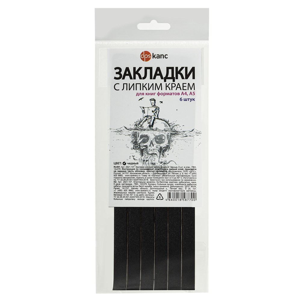 Закладки для книг САМОКЛЕЯЩИЕСЯ, КОМПЛЕКТ 6 шт., черный, ДПС, 2921-107