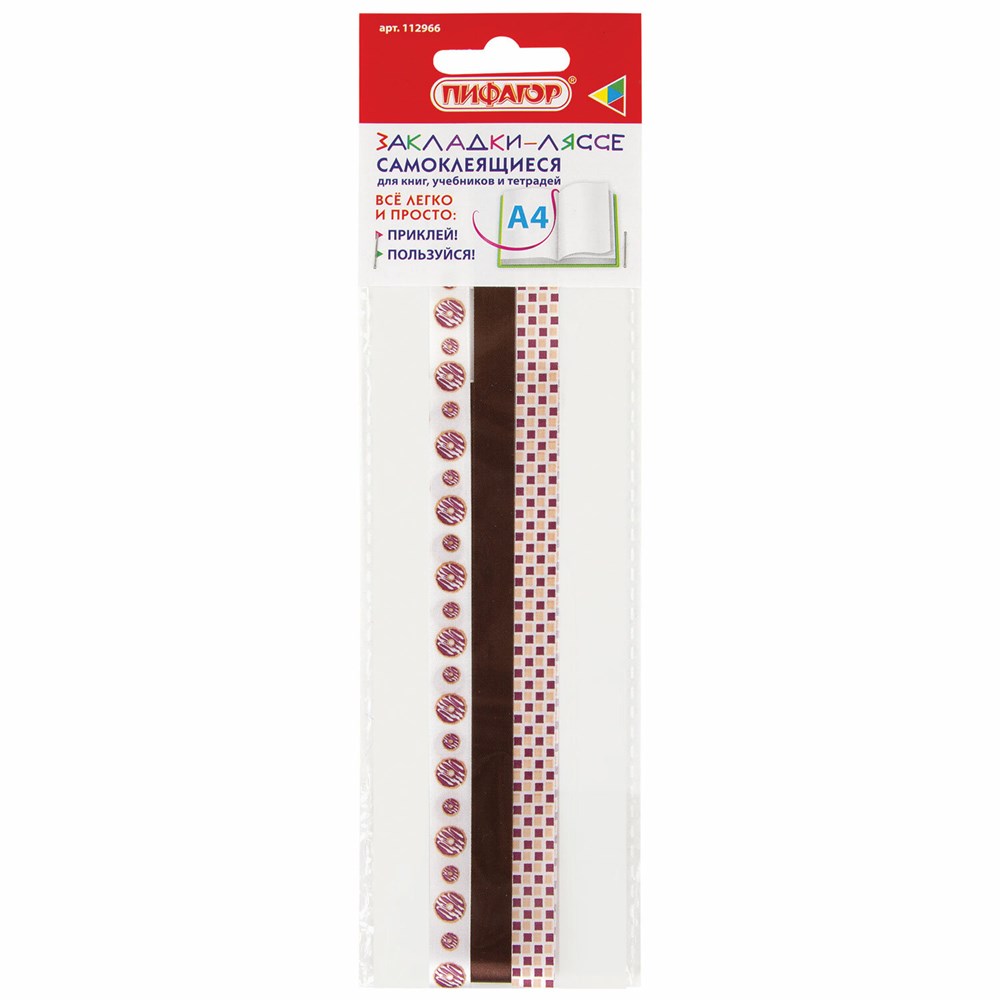 Закладки-ляссе фактурные для книг А4 (длина 38 см) "ШОКОЛАД", клейкий край, 3 ленты, ПИФАГОР, 112966
